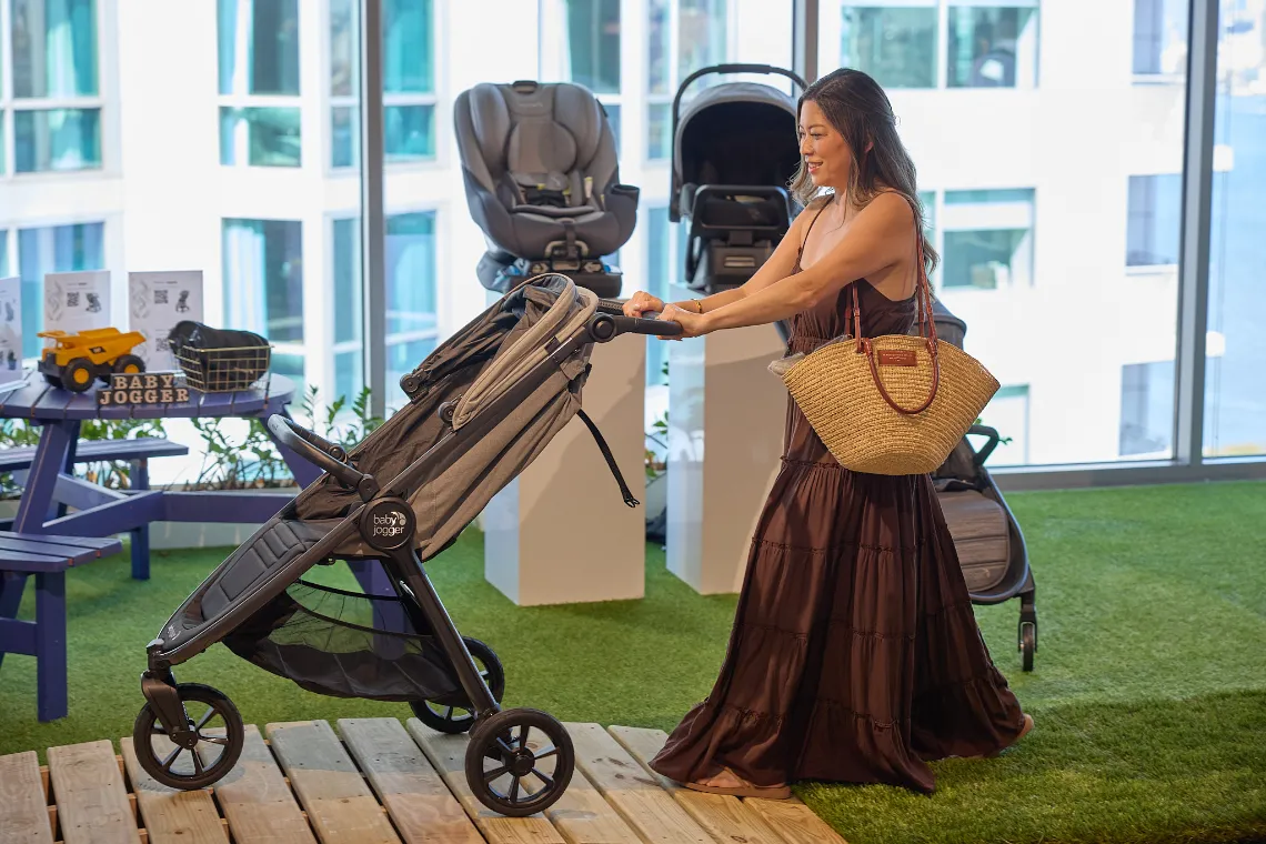 Baby: A Baby Jogger® stroller terrain test track, Graco® car seat installation zone, bouquet-building station, NUK® pacifier-themed cupcakes, and a sweet treat bar created a playful and informative experience.