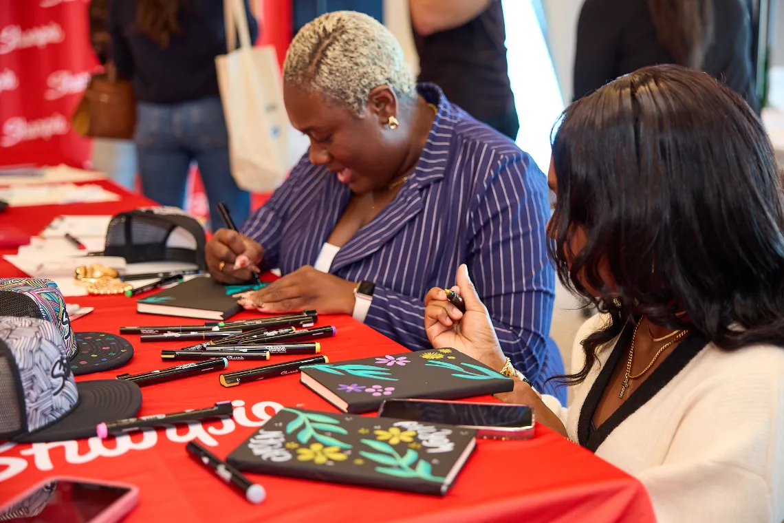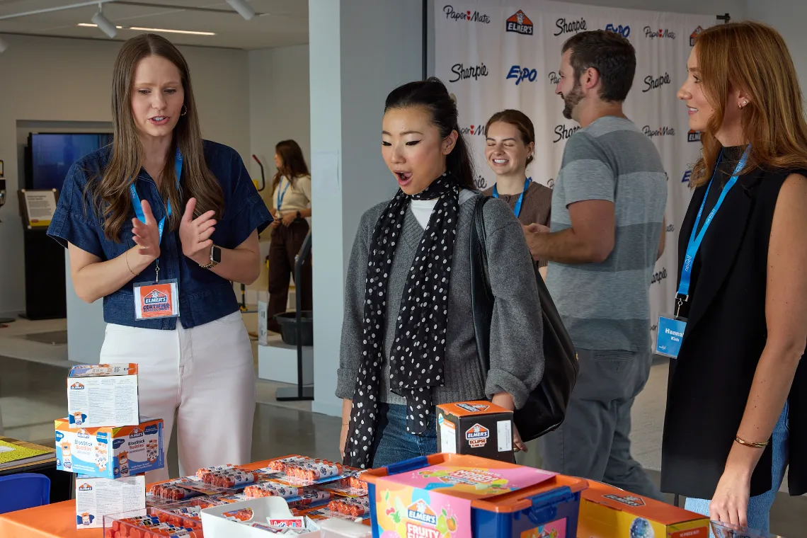 Writing: Elmer’s® Glue and Slime Bar, Sharpie® personalization station, Paper Mate®’s “What Brings You Joy” wall, and Expo®’s treat bar with Wet Erase marker jar decorating showcased creativity and self-expression.